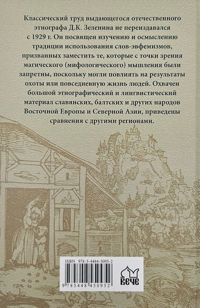 The classic work of the outstanding Russian ethnographer D. K. Zelenin has not been republished since 1929. It is devoted to the study and understanding of the tradition of using euphemistic words designed to replace those that were forbidden from the point of view of magical (mythological) thinking, since they could affect the results of hunting or the daily life of people. It covers a large ethnographic and linguistic material of the Slavic, Baltic and other peoples of Eastern Europe and Northern Asia, and provides comparisons with other regions.