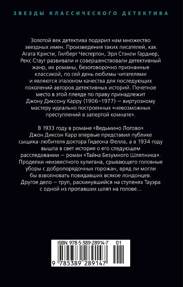 In 1933, in the novel “The Witch’s Den,” John Dickson Carr first introduced the amateur detective Dr. Gideon Fell to the public, and in 1934, the story of his next investigation, the novel “The Mystery of the Mad Hatter,” was published. The antics of an unknown hooligan, tearing off hats from respectable citizens, could hardly excite Londoners who have seen it all. Another matter is a corpse sprawled on the steps of the Tower with one of the missing hats on its head...