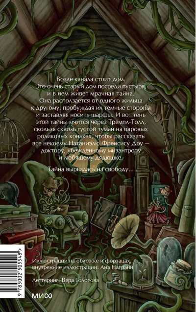 There's a house by the canal. It's a very old house in the middle of nowhere, and within it lives a dark secret. It spreads from one tenant to the next, awakening their dark sides and compelling them to wear scarves. They tried to keep this secret contained, but like any infection, it found a way out. And now the shadow of this secret is racing through Tremple Tall, through the thick fog, on steam-powered roller skates. Racing to tell everything to one Nathaniel Francis Dawe, a doctor, a confirmed misanthrope, and a loving uncle. The secret has broken free...