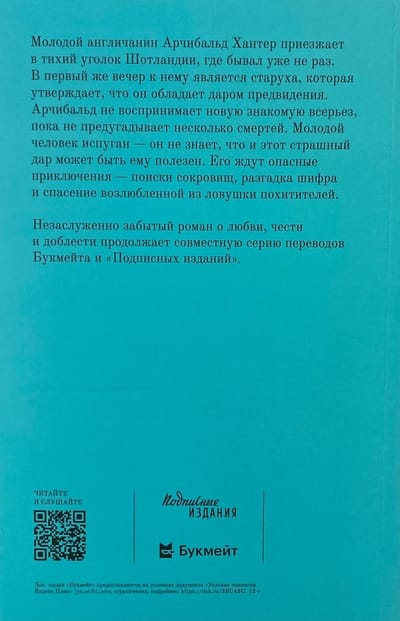 Young Englishman Archibald Hunter arrives in a quiet corner of Scotland, a place he's visited many times before. On his very first evening, an old woman appears to him, claiming he possesses the gift of foresight. Archibald doesn't take his new acquaintance seriously until he predicts several deaths. The young man is terrified, unaware that this terrifying gift can also be useful. Dangerous adventures await him: a treasure hunt, solving a code, and rescuing his beloved from a kidnapping trap.