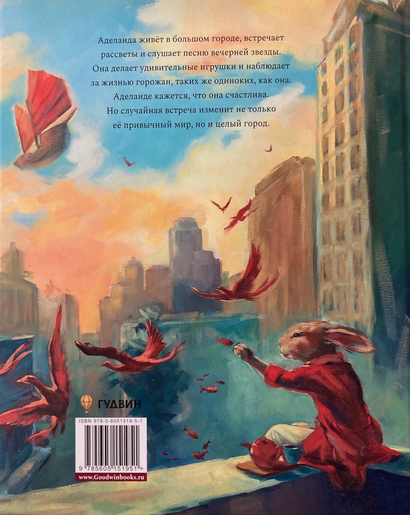Adelaide lives in a big city, meets the sunrises and listens to the song of the evening star. She makes amazing toys and watches the lives of city dwellers, who are as lonely as she is. Adelaide thinks she is happy. But a chance meeting will change not only her familiar world, but the entire city.