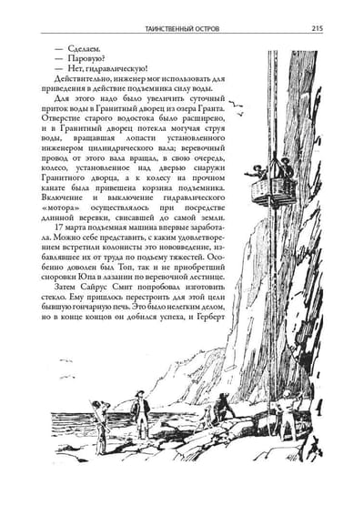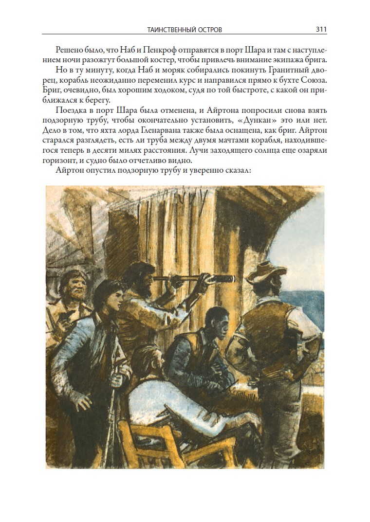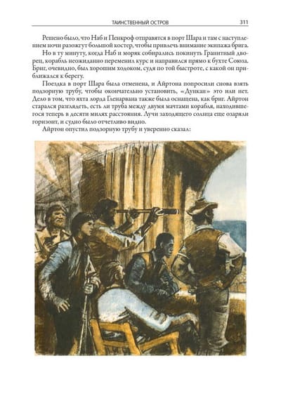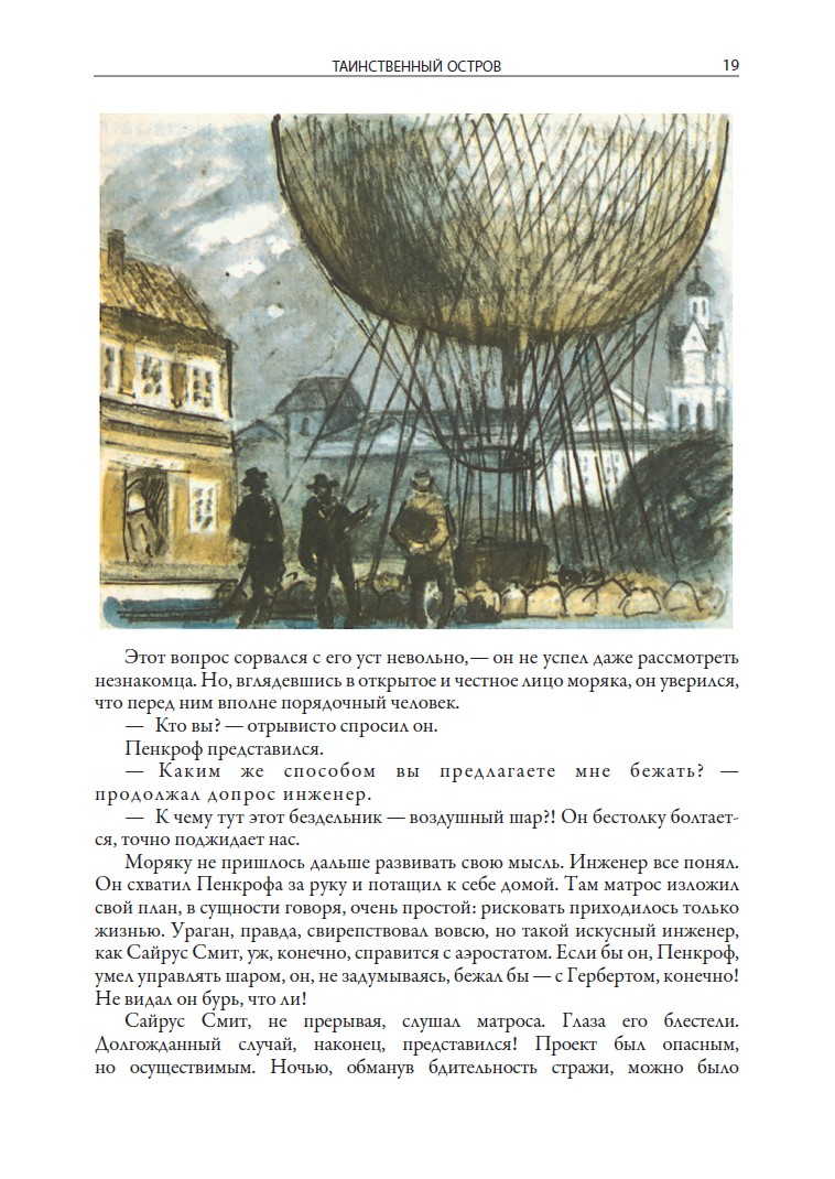The novel "The Mysterious Island" was published six years after the publication of "The Children of Captain Grant". He became the last in the famous trilogy of Jules Verne, which is united by common characters. It continues to act Captain Nemo, who appeared in the second novel of the trilogy - "Twenty Thousand Leagues Under the Sea". The novel "Mysterious Island" can be attributed to the unfading genre of "robinsonade", the progenitor of which was Daniel Defoe, who wrote "Robinson Crusoe". In Jules Verne's novel, the heroes are also forced to survive on an island, which in addition hides an incredible secret. The writer from childhood dreamed of traveling. He realized his dream by starting to wander together with the heroes of his novels. The thirst to learn a different life forced Jules Verne to spend almost all his free time in the halls of the National Library. It was from books that the novice writer drew the most diverse knowledge. He began to write plays, but found his niche in literature, only when he began to compose adventure novels, generously laced with historical excursions and geographical descriptions of various countries. In collaboration with publisher Pierre-Jules Etzel, Jules Verne created a whole series of "Extraordinary Voyages". Some of the works included in it we would call science fiction today. The edition of the novel in this book is decorated with illustrations by the wonderful artist Peter Ivanovich Lugansky. They bribe with their authenticity. After all, this is how the jungle with its vines and huge ferns or bluish spurs of mountains on the horizon look. Lugansky is always accurate when depicting the costumes of Jules Verne's heroes or the rigging of sailing ships. Meanwhile, Peter Ivanovich never left the borders of his country. The future artist was born in 1911 in pre-revolutionary Russia, in the small village of Bokovo, located on the banks of the Bolshaya Kamenka River. At that time it was the territory of Lugansk province. Peter's parents were simple people and had nothing to do with art. After graduating from the oldest art school in Kharkov, Lugansky began working in Leningrad, where he collaborated with the magazine "Koster", publishing houses "Detgiz" and "Lenizdat". Probably deep immersion in the colorful, created by writers virtual world brightened Lugansky own not too happy life. The war separated him from his family, and until the end of his days the artist lived alone and rather isolated, spending most of his time in his studio in the famous House of Artists on Pesochnaya Embankment.