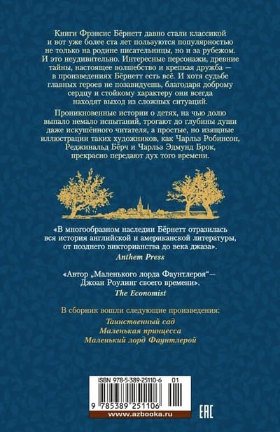 The life of seven-year-old Cedric was no different from the life of an ordinary boy, until one day he learned that he had inherited a huge fortune and a noble title. However, getting along with his stern and arrogant grandfather, the earl, to whom Cedric had to move, turned out to be quite difficult. The novel Little Lord Fauntleroy, published in 1886, instantly became a bestseller and was loved by readers. With this book, the then not very famous writer Frances Burnett made a name for herself. And the stories The Secret Garden and The Little Princess, in which the main characters, despite their young age, bravely overcome life's difficulties, inscribed Burnett's name in the history of literature. Heartfelt works about children who have had to endure many trials touch the depths of the soul, and simple but elegant illustrations by artists such as Charles Robinson, Reginald Birch and Charles Edmund Brock perfectly convey the spirit of that time.