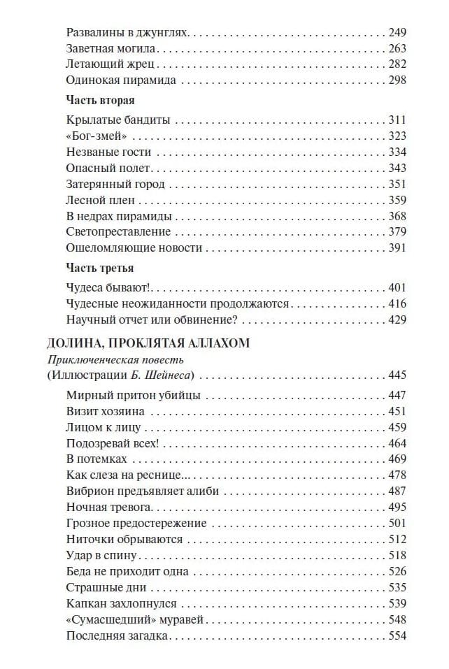 If in the novels published in previous volumes of the Collected Works of the writer, the reader followed the vicissitudes of the excavation of Scythian mounds, the study of our past and the life of the mysterious inhabitants of the sea depths, the dangers awaiting on this path of archaeologists; for attempts to unravel the fate of the mysterious Atlantis, now the reader's attention is focused on archaeologists-Egyptologists engaged in the study of the past of this country ("The Mystery of the Pyramid of Hiren"); and scientists devoted to the study of the mysterious Maya people, joined by a Soviet scientist-epidemiologist, trying to prove his theory of the disappearance of the ancient people as a result of a dangerous and deadly disease ("Investigation Through the Ages"). Epidemiologists are also the heroes of the story "The Valley Cursed by Allah" - they are trying to establish the causative agent of a deadly disease. In all the novels of this volume, scientists are on their way not at all conventional dangers: they have to face not only with death-bearing microbes, but also with unscrupulous businessmen from science, and simply with bandits.