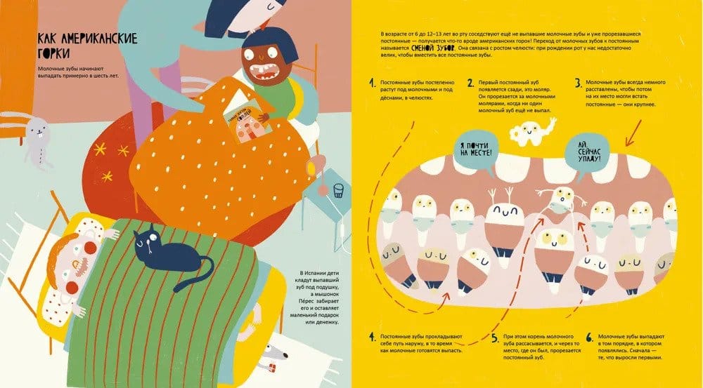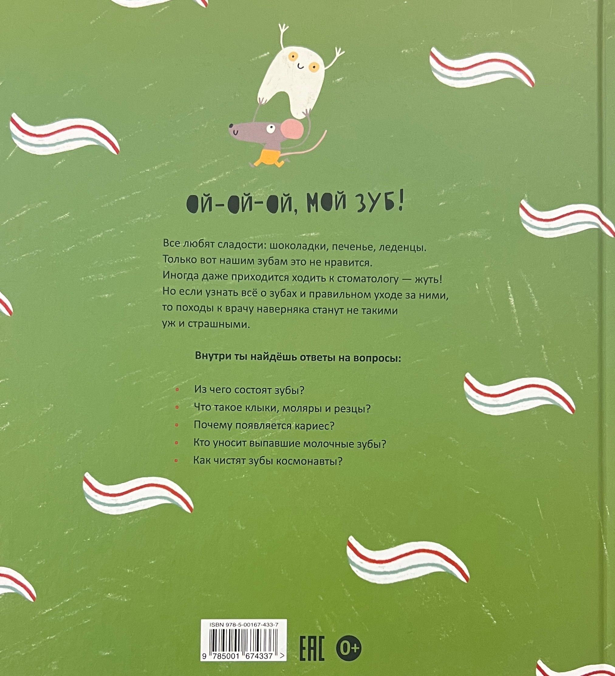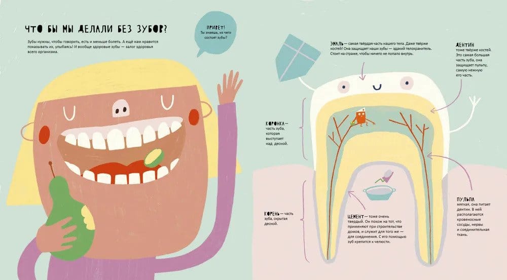 Oh, my tooth! Everybody loves sweets: chocolates, cookies, candy. Except our teeth don't like it. Sometimes we even have to go to the dentist - creepy! But if you learn all about teeth and proper care for them, going to the dentist probably won't be so scary. Inside you'll find answers to the questions: - What are teeth made of? - What are canines, molars, and incisors? - Why does tooth decay occur? - Who carries away baby teeth that have fallen out? - How do astronauts brush their teeth?