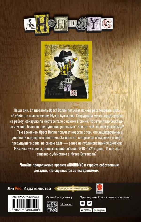 Our days. Investigator Orest Volin receives orders to investigate a murder case in Moscow's Bulgakov Museum. An employee of the museum, coming to work in the morning, found a dead body with a knife in its back. But then the body disappeared without a trace. Was the crime real? Or was it someone's evil prank? Meanwhile, Orest Volin receives news that the encrypted diaries of court counselor Zagorsky, which he discovered in the course of the previous case, are in fact the previously unpublished diary of Mikhail Bulgakov, describing the events of 1918-1921... And what does this have to do with the murder at the Bulgakov Museum? Read the continuation of the ANONYMYC project and make your own guesses as to who is hiding behind the pseudonym.