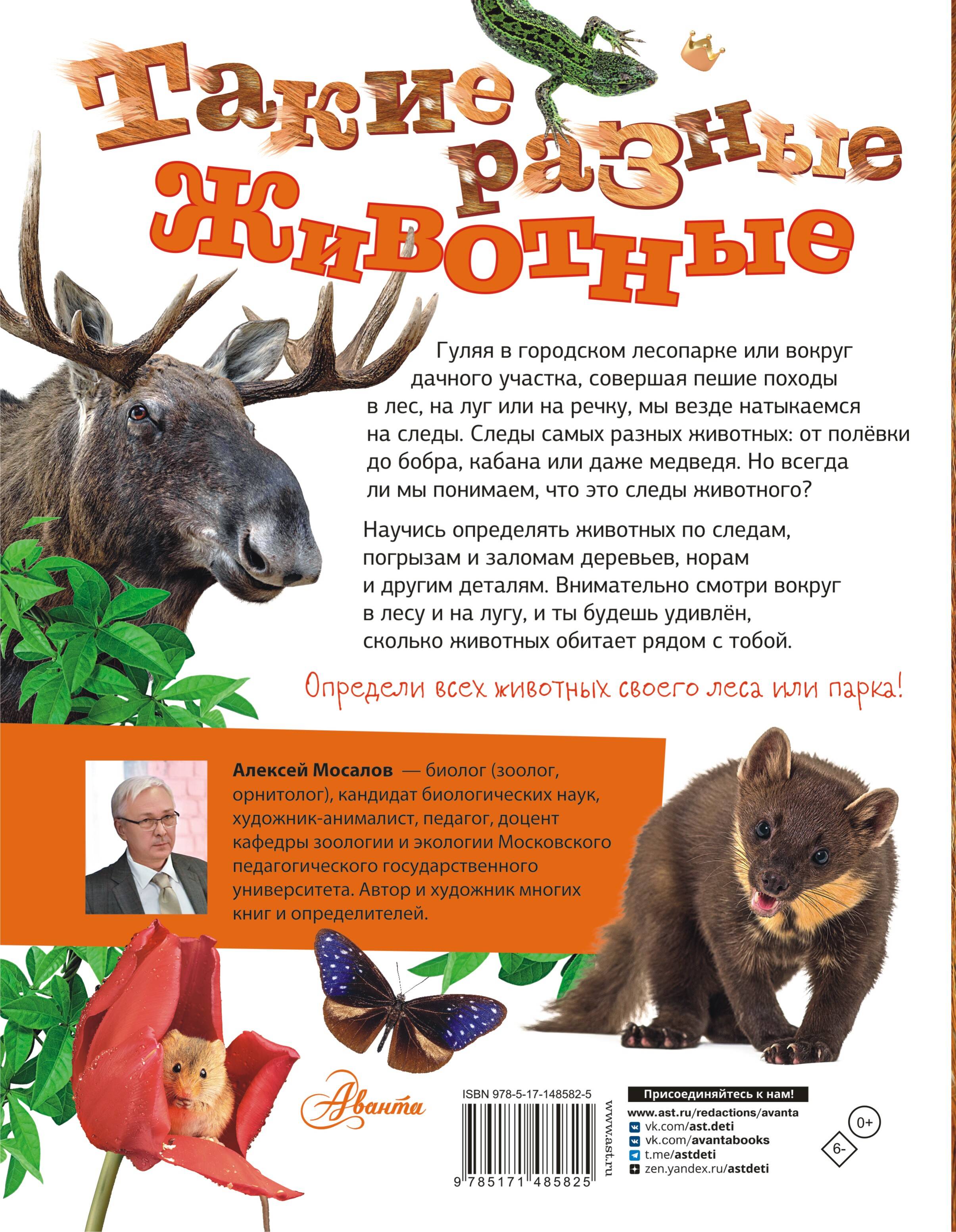 The book by the famous biologist, animal artist and teacher Alexey Alexandrovich Mosalov tells about those animals that we all know from childhood. We know, but we don’t know. Agree, rarely does anyone know how to recognize animal tracks in the forest and in the meadow, see gnaws and breaks on trees, determine which animal owns a found hole or a gnawed cone! Our encyclopedia will put everything in its place: it will teach you to identify animals, suggest places where you can see them, tell you about their characteristic habits and lifestyle. And the information received will be useful to children not only in lessons and for preparing reports, homework, but also during hikes outside the city, in the forest and in the meadow, and even walks in the city forest park. Identify animals, learn everything about the world around you!