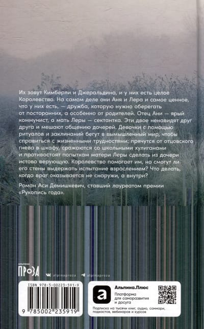Their names are Kimberly and Geraldine, and they have a whole Kingdom. In reality, they are Anya and Lera, and the most valuable thing they have is friendship, which must be protected from strangers, especially from their parents. Anya's father is an ardent communist, and Lera's mother is a sectarian. These two hate each other and interfere with the daughters' communication. The girls, with the help of rituals and spells, escape to an imaginary world to cope with life's difficulties: they hide from their father's anger in the closet, fight school bullies, and resist the attempts of Lera's mother to make her daughter a devout believer. The Kingdom helps them, but will its walls be able to withstand the test of growing up? What to do when the enemy is not outside, but inside?