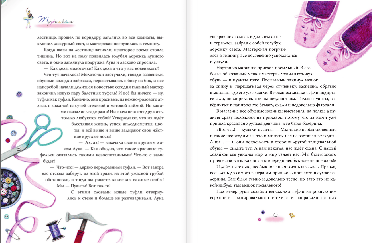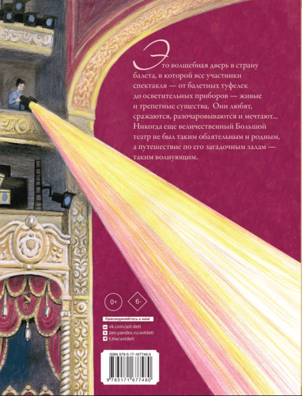 Tender, light and magical fairy tales from the famous ballerina, People's Artist of Russia Ilze Liepa. Have you ever wanted to take a peek at the incredible world of ballet? Everything here - from pointe shoes to bright spotlights - comes to life as soon as you open the heavy velvet curtain. The book includes the following fairy tales: Shoes; The Frog Ballerushka; When the Lodges Argued; A Hot Heart; Grandma's Tale; The War of Cats and Machines; How Skirt Fell in Love with Colette; The Mouse-Critic; Buns. Ilze Liepa is a ballerina, theater and film actress. Laureate of the Golden Mask National Theater Award.