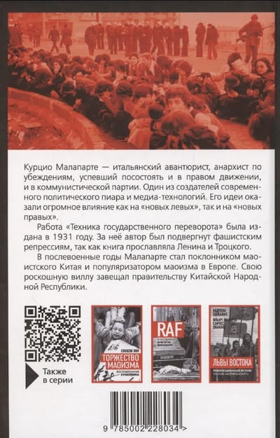 "The Technique of the Coup d'état" was written in 1931 in Paris after Malaparte had fallen out with the Italian Fascist Party. It was first published in French and caused much controversy. The author was accused of cynicism and hypocrisy, which resulted in Malaparte being imprisoned in Italy with the following sentence: dissemination of anti-fascist propaganda abroad.