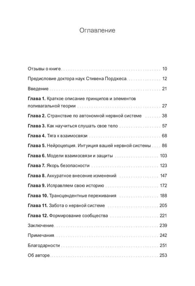A guide from a clinical psychologist and founder of the Polyvagal Institute that will help you find peace of mind and safety by exploring your body's nervous system. A tense conversation, an argument with a partner, or disturbing news are all common situations, but often we react as if we are in terrible danger. The fact is that the human nervous system perceives physical and psychological threats in the same way. Unjustifiably acute reactions to seemingly familiar things often become a serious problem, but there is a very effective approach through which you can teach the nervous system to adapt to changing circumstances and not perceive them as a threat to life. This is the polyvagal theory. Psychotherapist Deborah Dana explains the main points of the polyvagal theory and tells how to put the science into practice. Each theoretical thesis is followed by simple tools that are easy to implement into daily life to understand and learn how to control nervous system reactions. Deborah Dana will help you regain a state of calm and confidence in any cycle of events.