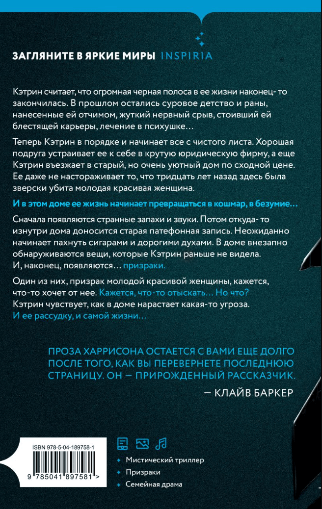 Artfully twisted mystical novel in the best traditions of the genre: an old house, hidden rooms, old secrets - and ghosts. A story reminiscent of Stephen King’s The Shining takes you through a maze of mysteries to an unexpected end. And all the way you will have cold blood in your veins.