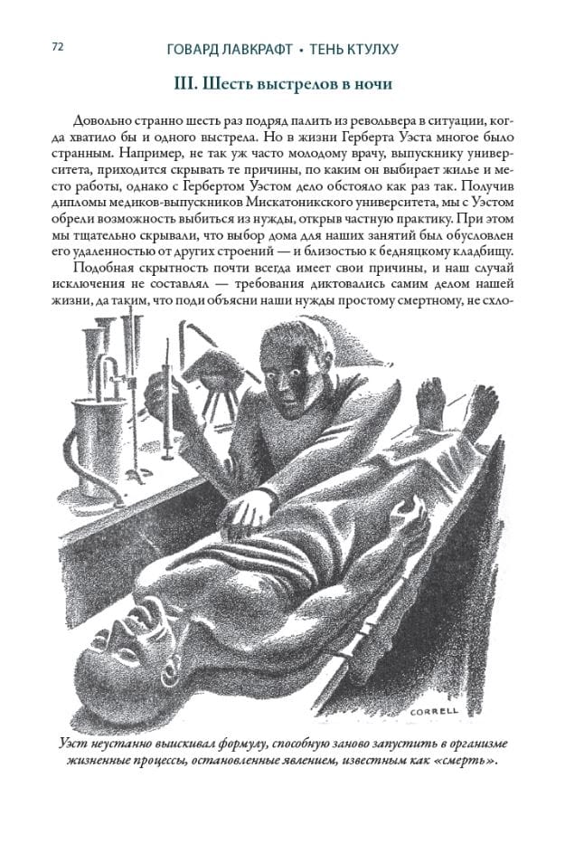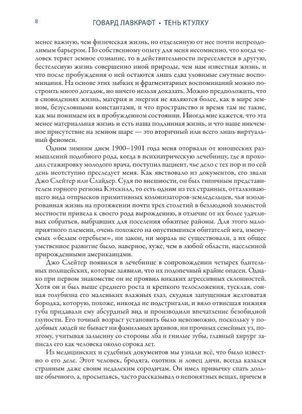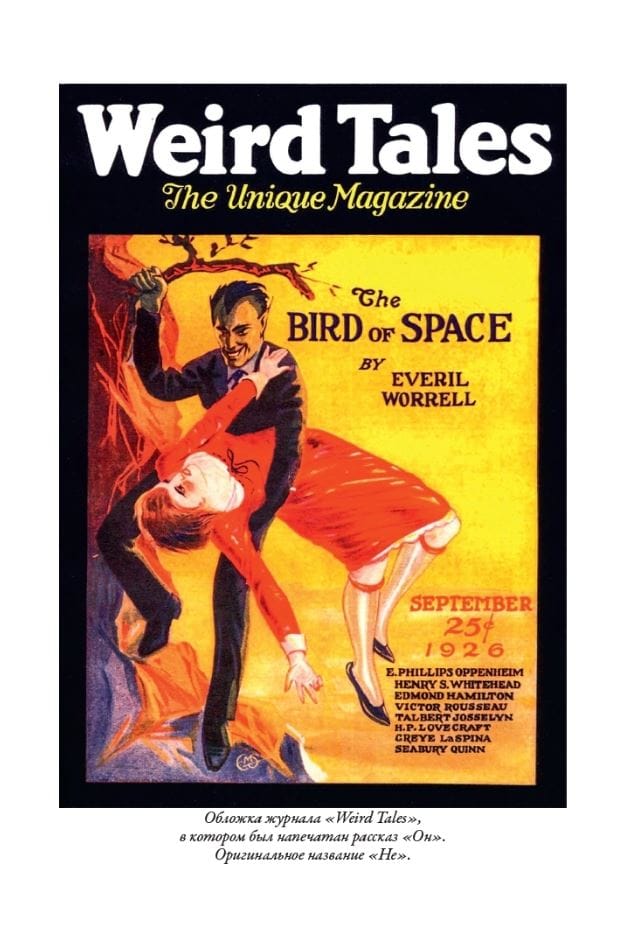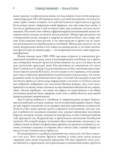 The collection introduces the reader to twenty-two stories by Howard Phillips Lovecraft (1890–1937). In the works of Lovecraft, who became one of the founders of horror literature, the world is depicted as something mysterious and shaky, inaccessible to human understanding. The mystical stories in the collection are accompanied by illustrations that adorned the first magazine publications of these works at the beginning of the 20th century. Translations of the texts into Russian were done by S. Zhigalkin, E. Lyubimova, O. Makeeva and V. Charny; each story has a preface by G. Shokin.