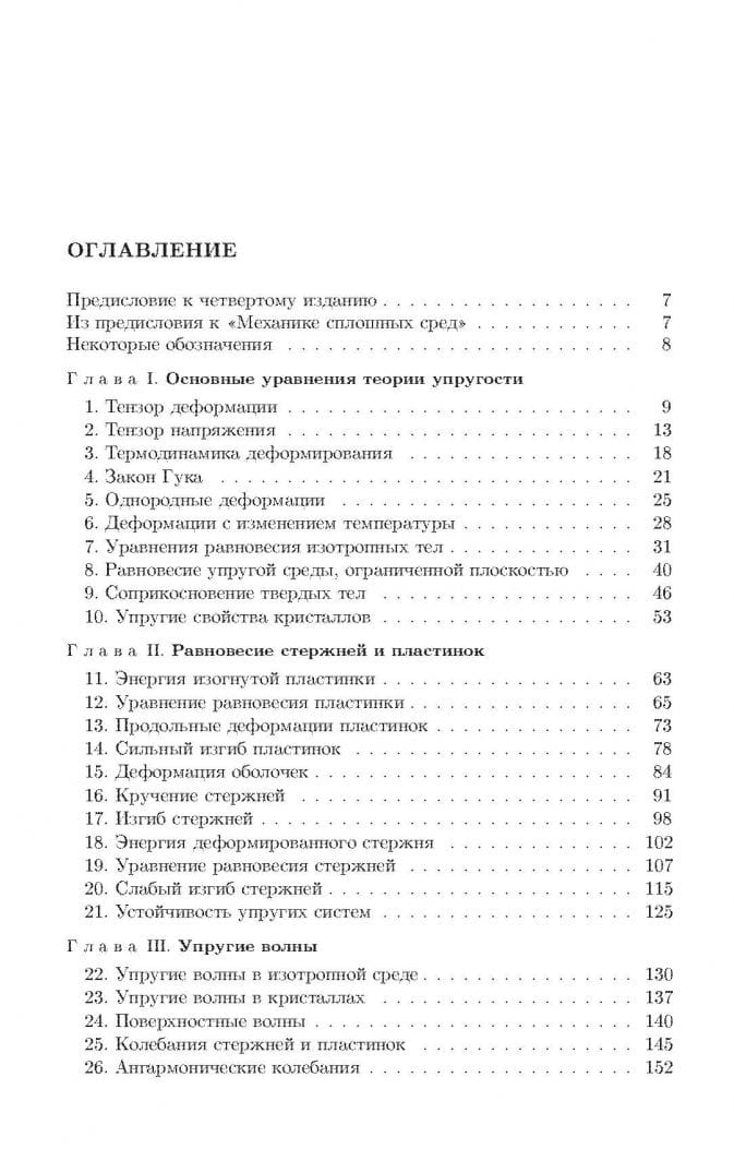 The theory of elasticity is presented as a part of theoretical physics. Along with traditional questions, the macroscopic theory of heat conduction and viscosity of solids, a number of questions of the theory of elastic vibrations and waves, and the theory of dislocations are considered. The fourth edition adds a special chapter on the mechanics of liquid crystals, which combines features peculiar to both liquids and elastic media. For university students, students of physics at universities, as well as graduate students of relevant specialties.
