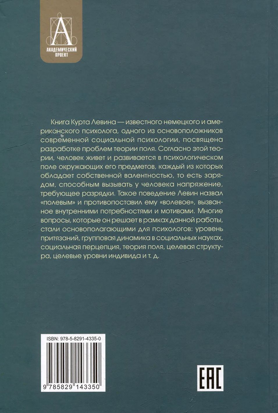 This book by Kurt Lewin, a renowned German-American psychologist and one of the founders of modern social psychology, explores the problems of field theory. According to this theory, humans live and develop within a psychological field of surrounding objects, each of which possesses its own valence, that is, a charge capable of generating tension in a person that requires release. Lewin called this behavior "field behavior" and contrasted it with "volitional behavior," driven by internal needs and motives. Many of the issues addressed in this work have become fundamental for psychologists: aspiration levels, group dynamics in the social sciences, social perception, field theory, goal structure, individual goal levels, etc.