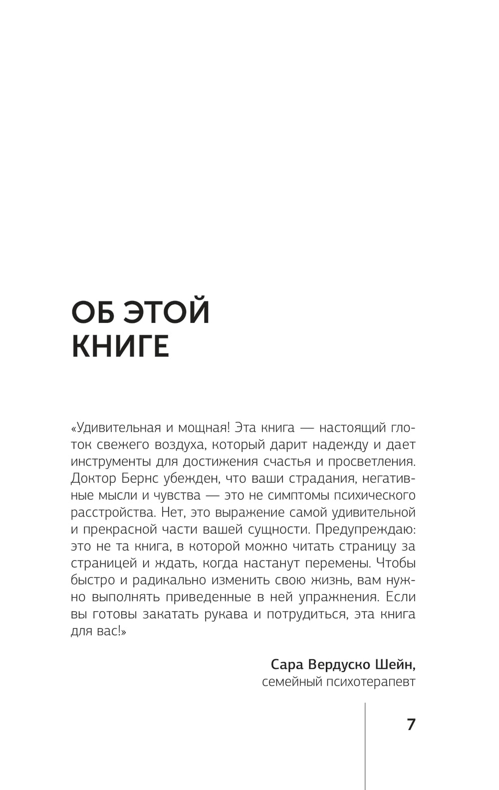 Before you is the latest, expanded edition of the classic work of David Burns, based on the latest research in the field of psychology. The book contains more than 50 techniques with which you can overcome negative thoughts and the anxiety and depressed mood they cause. New methods will help develop a sense of joy and a positive attitude towards yourself and life.