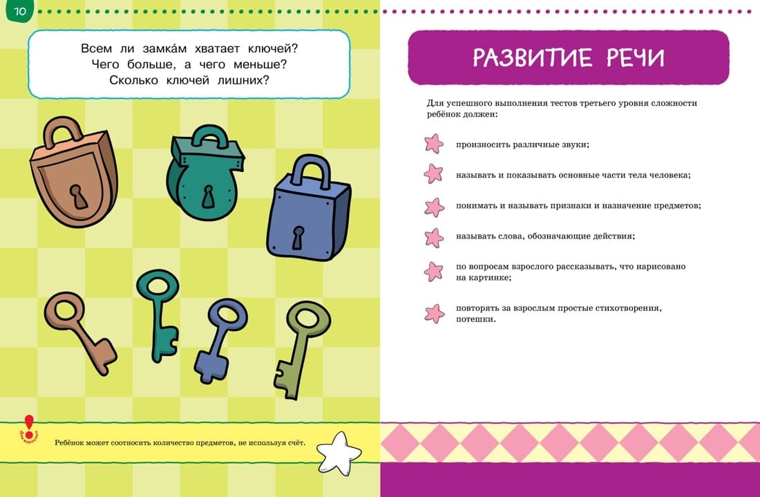 The purpose of the method developed by the author is the comprehensive development of the child taking into account the requirements of modern preschool education. Zemtsova's method forms in children not only a system of knowledge, but also a positive attitude to learning, confidence in their abilities and focus on the result. In this series you will find books with test tasks of three levels of complexity for different age groups. Using the books, you will be able to test your child's knowledge and find out which skills need additional development. Recommended for classes with children in kindergarten and at home. For preschool age.