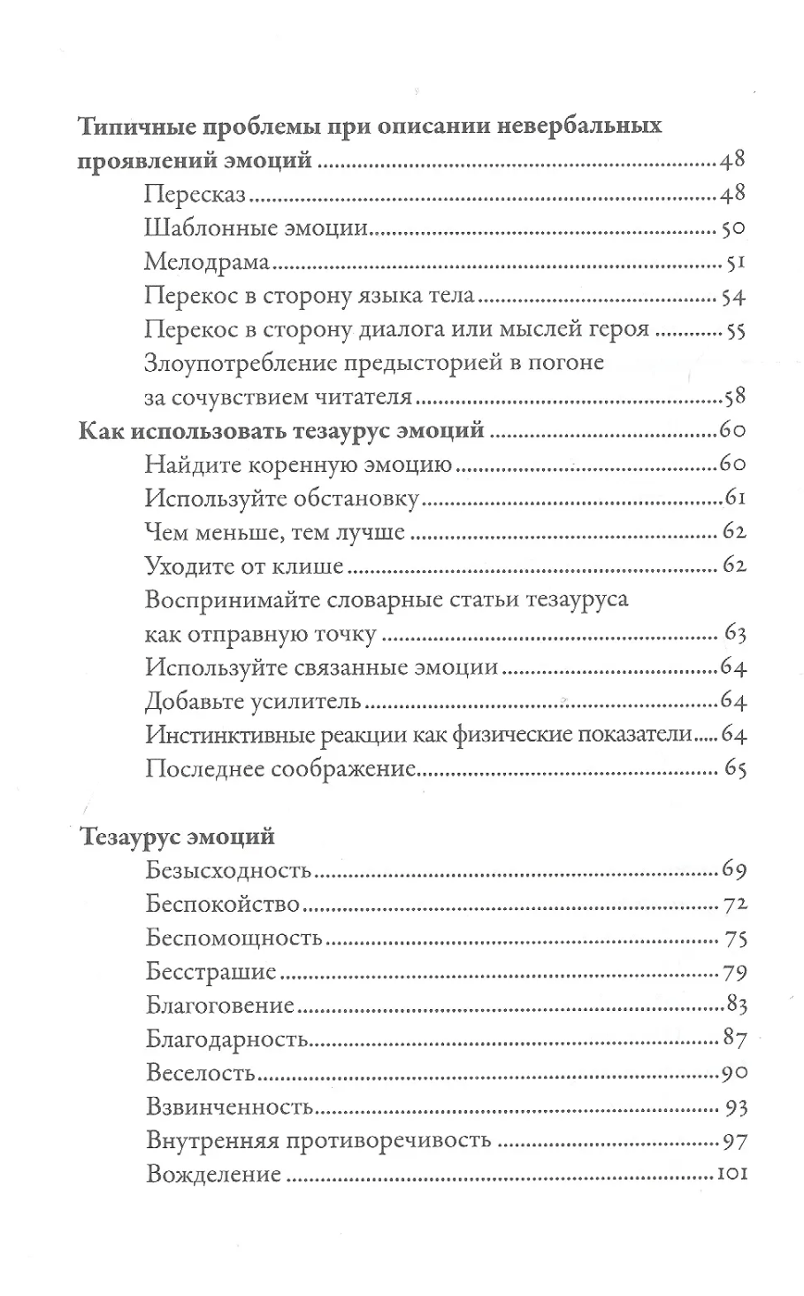 Any screenwriter or novelist knows the difficulty of describing human emotion. Angela Ackerman and Becca Puglisi, seasoned authors with extensive experience, have faced this challenge themselves and decided to help writers: in their book, they explored and systematized 130 different emotions and offered a unique guide to constructing contradictory, believable, and compelling characters. In addition to the dictionary, they have prepared a compact educational resource that offers a recipe for literary depiction of emotions based on the principle of "don't name it—show it." Furthermore, the "Emotion Thesaurus" examines the important role of subtext, dialogue, and backstory, helps relate different emotions to one another, and provides food for thought and inspiration for creative brainstorming.