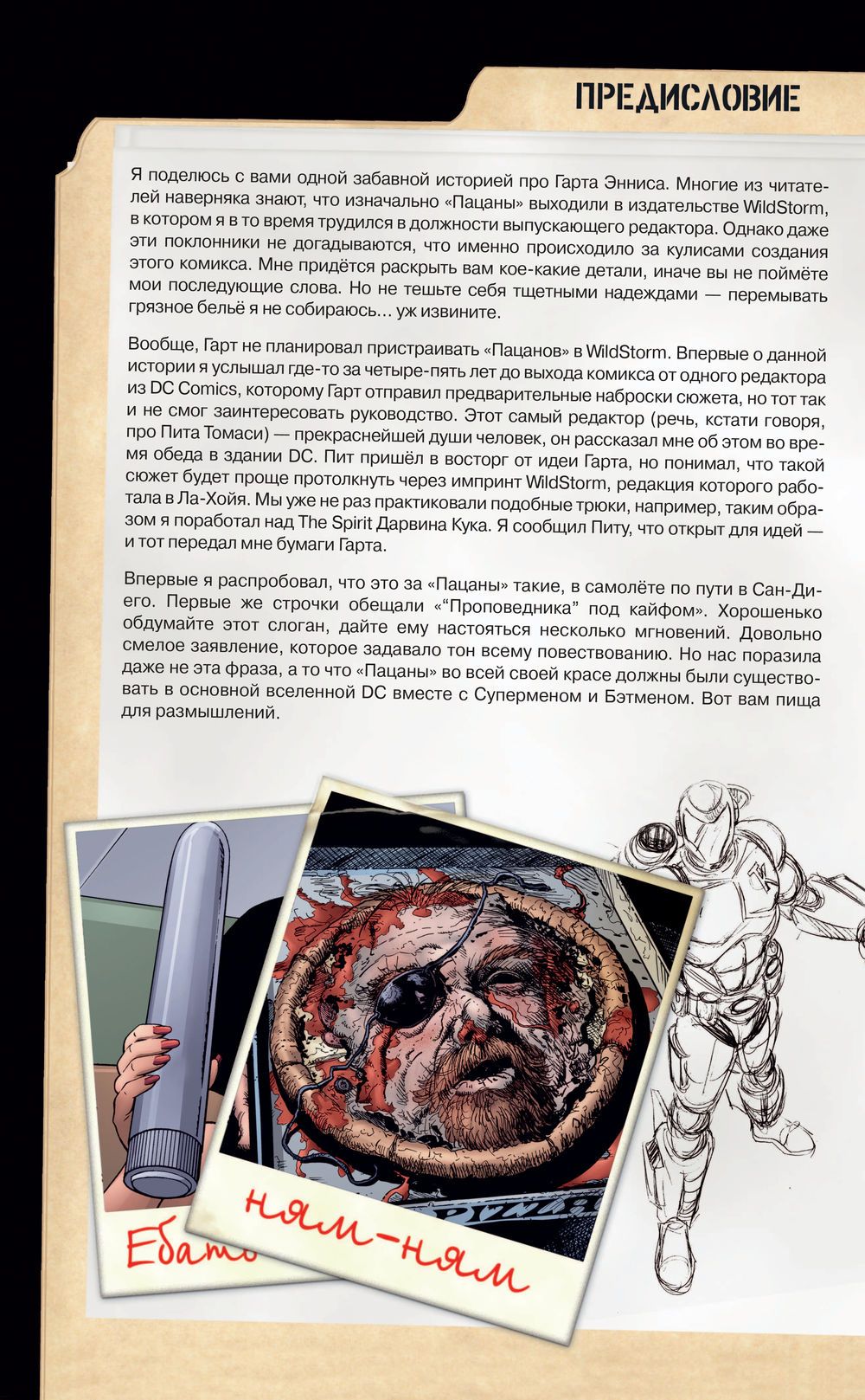 Dressed up heroes slicing through the skies. Masked vigilantes prowl the night. Someone has to make sure the supers don't go overboard. And that someone is here. The Boys: Billy Butcher, Baby Huey, Mother's Milk, Frenchman and Female. An extremely dangerous team under the auspices of the CIA against the deadliest force on earth - superheroes. Some of them need to be watched. Some of them need to be controlled. And some of them have to be killed. That's when the PATS are called in to help. Huey, who had recently suffered a terrible tragedy, just wanted justice. However, he had no idea that he would fall into a world of vulgarity and depravity. His guide becomes the mysterious Billy Butcher, who wants to put an end to the superhero dystopia. Together with MM, Frenchy and Samka, the "Boys" will have to unearth the truth about a mysterious and deadly conspiracy, learn the secrets of Teenage Kicks, Techno Knight, Wingman... and Earth's most terrifying greatest heroes - a team of powerful supers, better known as the Seven. Huey realizes he's in over his head... but there's no turning back.