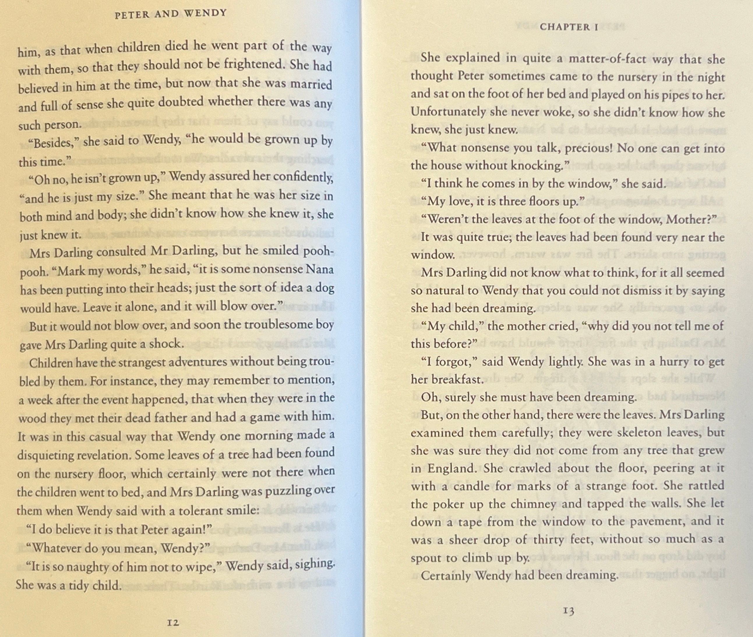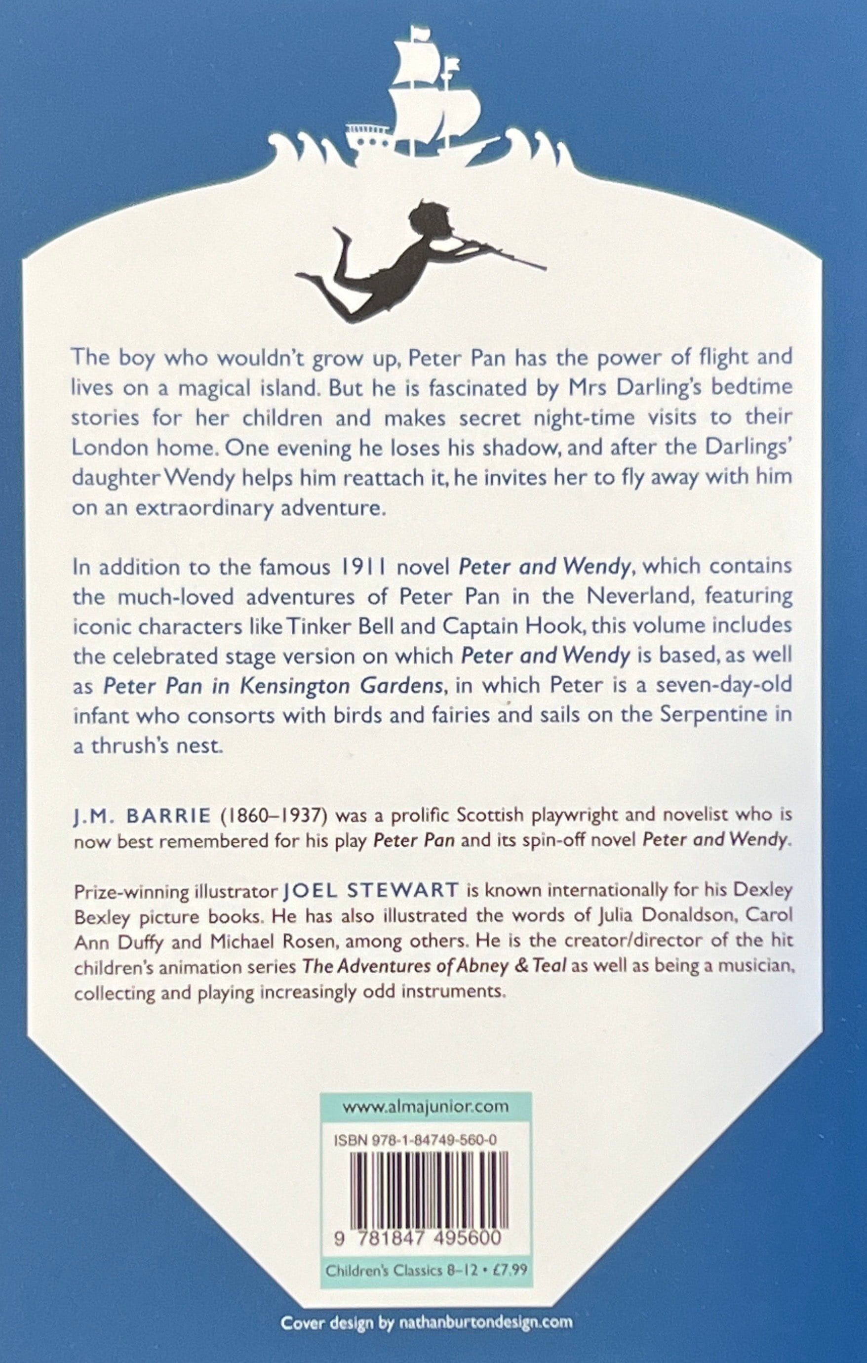In addition to the famous 1911 novel Peter and Wendy, which tells the familiar adventures of Peter Pan in Neverland and popularized the characters of Tinkerbell and Captain Hook, this volume contains the celebrated stage version on which Peter and Wendy is based, as well as Peter Pan in Kensington Gardens, in which Peter Pan is a seven-day-old infant who consorts with birds and fairies and travels down the Serpentine in a thrush's nest.