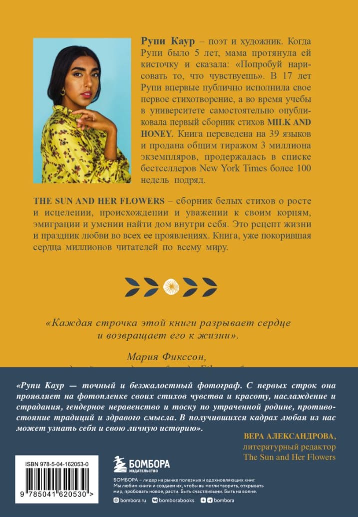 The long-awaited second book by Rupi Kaur, bestselling author of Milk and Honey, which has been translated into 39 languages and sold 3 million copies. "The Sun and Her Flowers" is a collection of white poems about growth and healing, origins and respect for one's roots, emigration and the ability to find home within oneself. It is a recipe for life and a celebration of love in all its forms, a book that has already captured the hearts of millions of readers around the world. Translations of the poems are published with the original texts in English and the author's unique illustrations.