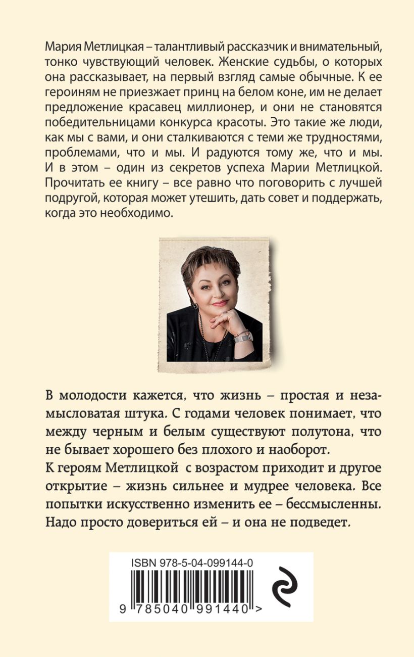Metlitskaya's heroes with age comes another discovery - life is stronger and wiser than man. All attempts to artificially change it are pointless. You just have to trust it - and it will not let you down.