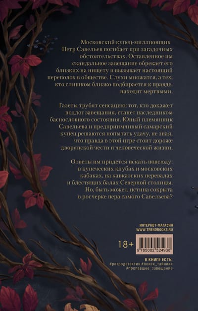A gripping retro detective story by professional historians based on historical facts. A complex will case, brutal murders, cemetery rendezvous, and a surprising ending await you!