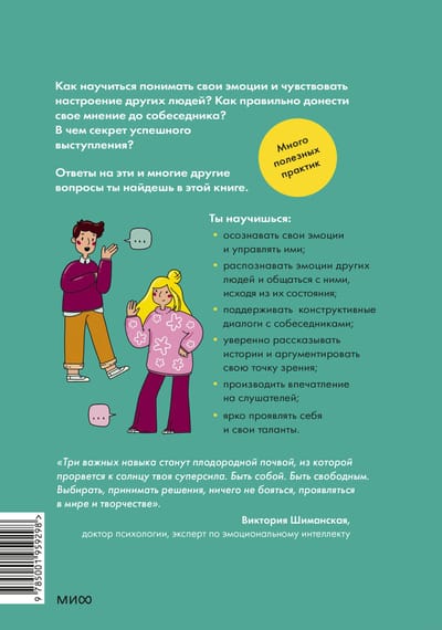 The author of this book will help you find answers, better understand yourself and others. Readers will learn to recognize not only their own and others' emotions, feelings, but also to manage their own state and communicate with others, taking into account their mood. They will learn how to formulate and argue their position so that the interlocutor understood it correctly. They will also learn the techniques of successful public speaking and will be able to impress listeners.