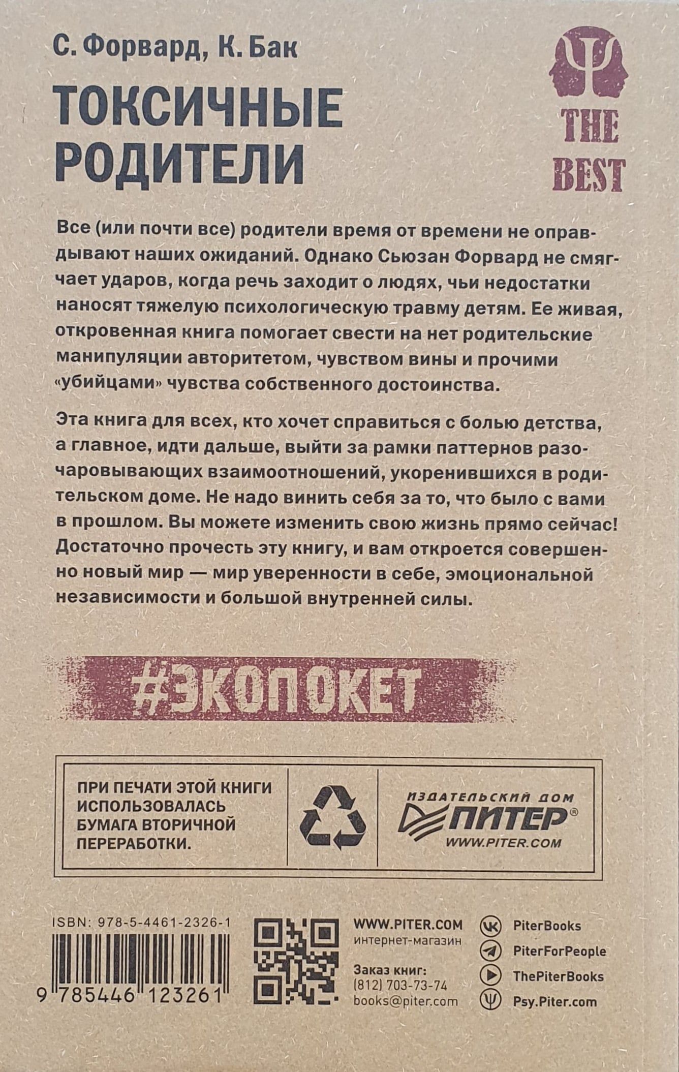 All (or almost all) parents fall short of our expectations from time to time. But Susan Forward doesn't soften the blow when it comes to people whose shortcomings inflict severe psychological trauma on children. Her lively, candid book helps bring down parental manipulations of authority, guilt, and other self-esteem "killers." This book is for anyone who wants to deal with the pain of childhood, and more importantly, move beyond the patterns of disappointing relationships ingrained in the parental home. You don't have to blame yourself for what happened to you in the past. You can change your life right now! Just read this book and a whole new world will open up to you - a world of self-confidence, emotional independence, and great inner strength.