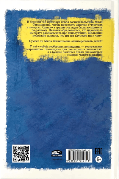 A new teacher, Mila Filippovna, comes to the kindergarten to teach classes about feelings and emotions. However, this idea was received differently in the group. The girls were happy that they would finally be told about kissing. Boys carelessly stated that they do not need this nonsense. Will Mila Filippovna manage to interest the children? She has with her an unusual assistant - a theater marionette. On weekends she plays in plays, and on weekdays she helps children to get acquainted with the world of feelings and emotions.