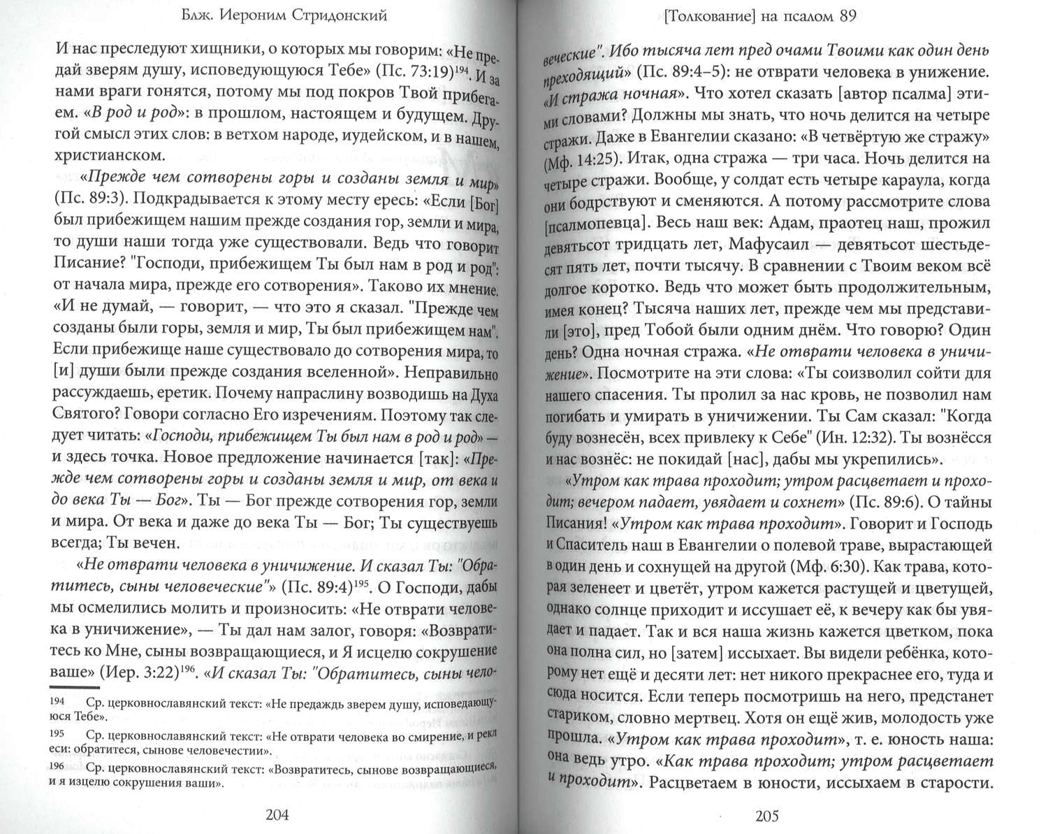 The book "Interpretations, or Conversations, on the Psalms" contains treatises by Blessed Jerome of Stridon, translated into Russian for the first time. Blessed Jerome relied in his interpretations on both the Septuagint and the Masoretic text, because he knew Hebrew, which allowed him to harmoniously combine Jewish and Christian biblical exegesis. The translation of the entire text is provided with comments in the footnotes. The translation of biblical quotations is done while preserving the features of the Latin original; in some cases, the Church Slavonic or Russian text is given for comparison.