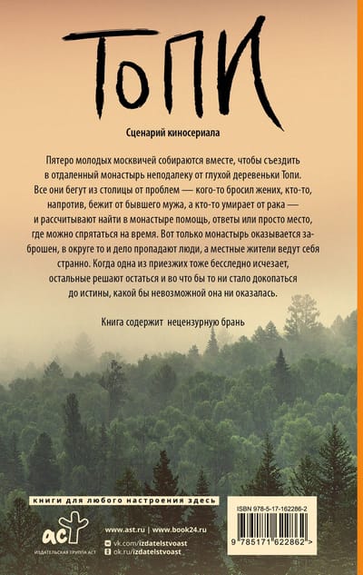 Five young Muscovites get together to travel to a remote monastery near the remote village of Topi. All of them are fleeing the capital from their problems - someone has been abandoned by her fiancé, someone, on the contrary, is running away from her ex-husband, and someone is dying of cancer - and expect to find help, answers or just a place to hide for a while in the monastery. Except the monastery turns out to be abandoned, with people going missing in the neighborhood, and the locals behaving strangely. When one of the visitors also disappears without a trace, the rest of the group decides to stay and by all means get to the truth, no matter how impossible it may turn out to be.
