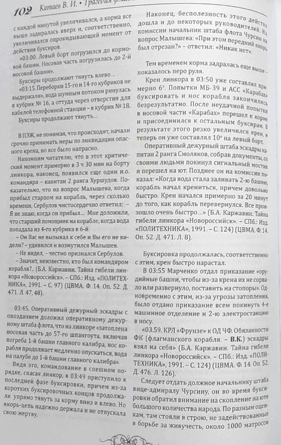 In the new book of the author, based on the archival materials of the GPU of the Ukrainian SSR, OGPU and TsVMA, introduced into the scientific turnover, made an attempt to analyze the greatest tragedies of the Black Sea Fleet in the twentieth century - the death of the battleships "Empress Maria" (1916) and "Novorossiysk" (1955).