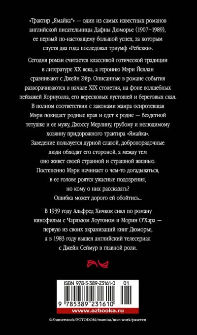 "Jamaica Tavern" - one of the most famous novels of the English writer Daphne Dumorier (1907-1989), her first really big success, followed two years later by the triumph of "Rebecca". Today, the novel is considered a classic of the Gothic tradition in twentieth-century literature, and the heroine Mary Yellan is compared to Jane Eyre. The events described in the novel unfold in the early nineteenth century, against the backdrop of the magical landscapes of Cornwall, its heathlands and coastal cliffs. In full accordance with the laws of the genre orphaned Mary leaves her native land and goes to her relatives - a childless aunt and her husband, Joss Merlin, a rude and unsociable owner of a roadside inn "Jamaica". The institution is notorious, good people avoid it, and meanwhile it lives its strange and terrible life. Gradually Mary begins to guess about something, in her head are swarming terrible suspicions, but who to tell about them? A mistake could cost her dearly ... In 1939 Alfred Hitchcock made a movie based on the novel with Charles Lawton and Maureen O'Hara - the first of his screen adaptations of Dumaurier's books, and in 1983 came the English TV series starring Jane Seymour.
