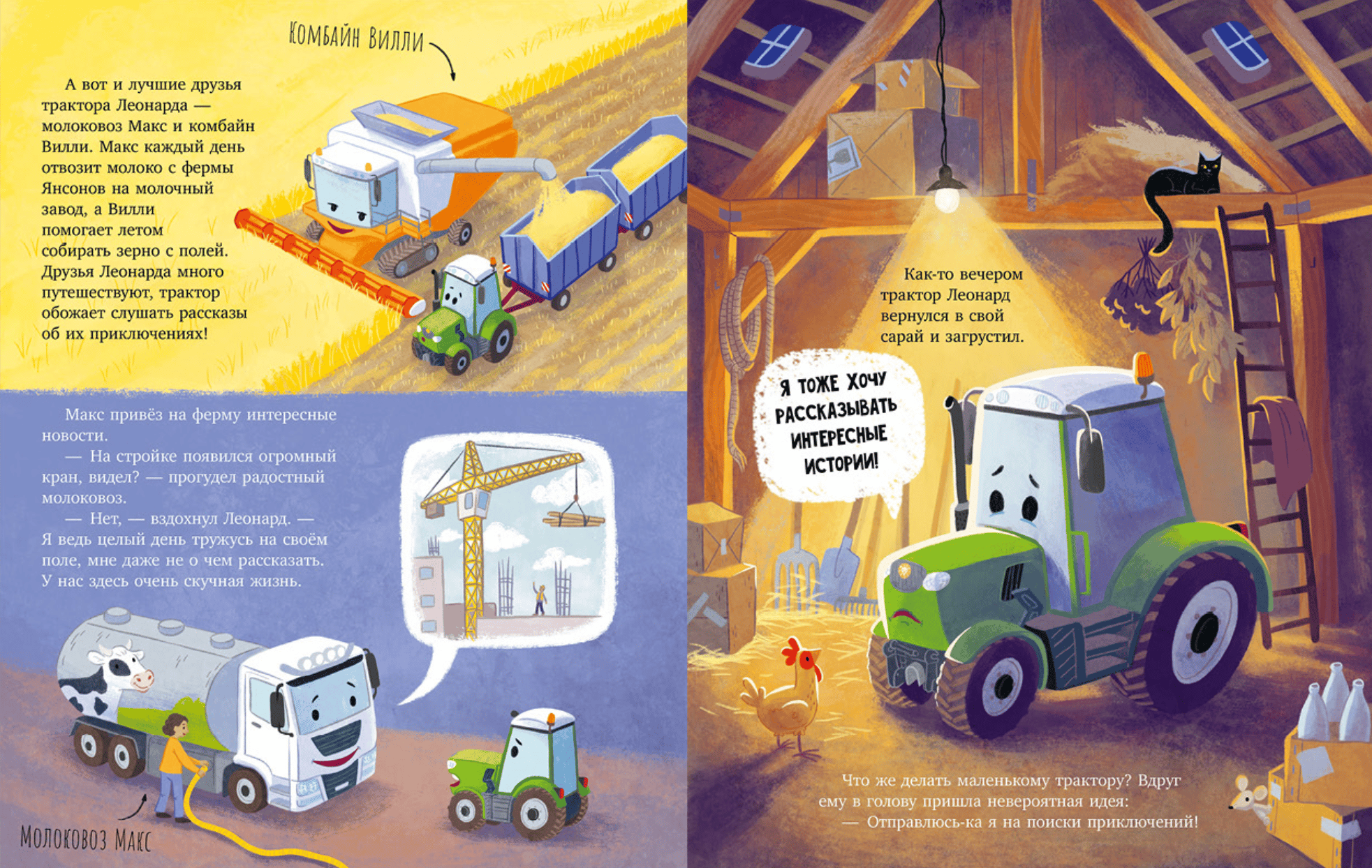 "Leonard the Tractor and the Great Adventure" is a colorful book with lots of detailed illustrations.