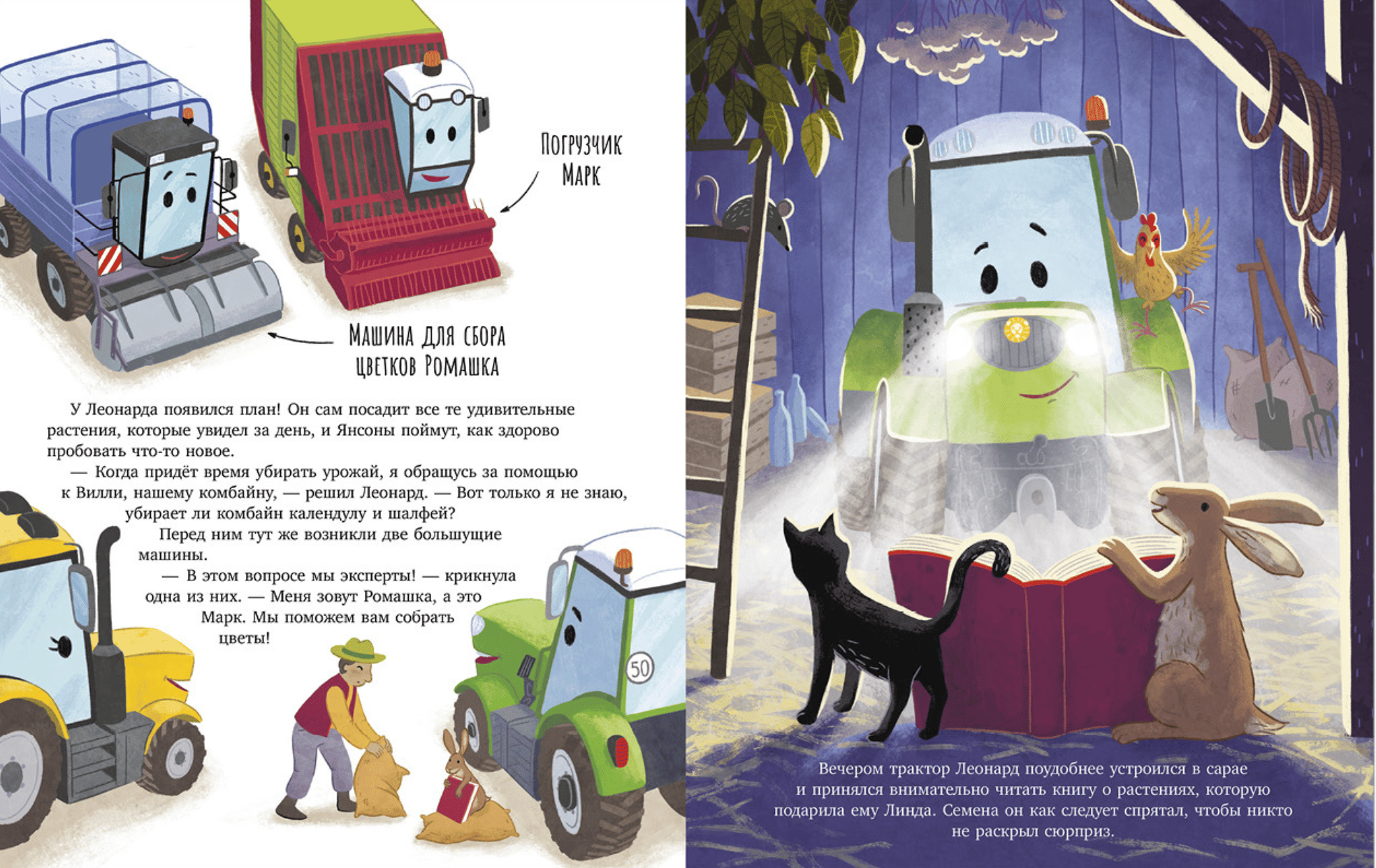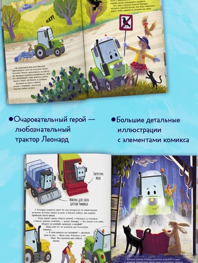 The plot of this Clever book will appeal to anyone who loves children's books about cars and exciting stories. One day, a little tractor decides to help his farmer, Janson, by growing new plants in the field. Together with his tractor friends and other machines, he sows seeds, tends to the sprouts, and weeds. Will hardworking Leonard be able to fulfill his mission and surprise Farmer Janson?