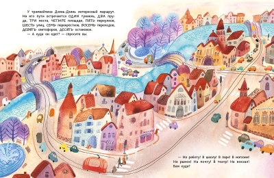The streetcar Dzin-Dzin has a very responsible job: from morning to evening, winter and summer, he takes passengers around the city: to school, to the park, to the store, to the post office, to the theater and to the station... And although his route is the same, every day is full of new impressions. But it turns out that someone is dissatisfied with the streetcar - cars! It interferes with everyone, hampers traffic: buses, trucks, cabs and cars... What can be done? In the good fairy tale for kids, which was invented and drawn by Olga Fadeeva, the answer is easy to find, and there are enough happy tickets for everyone!