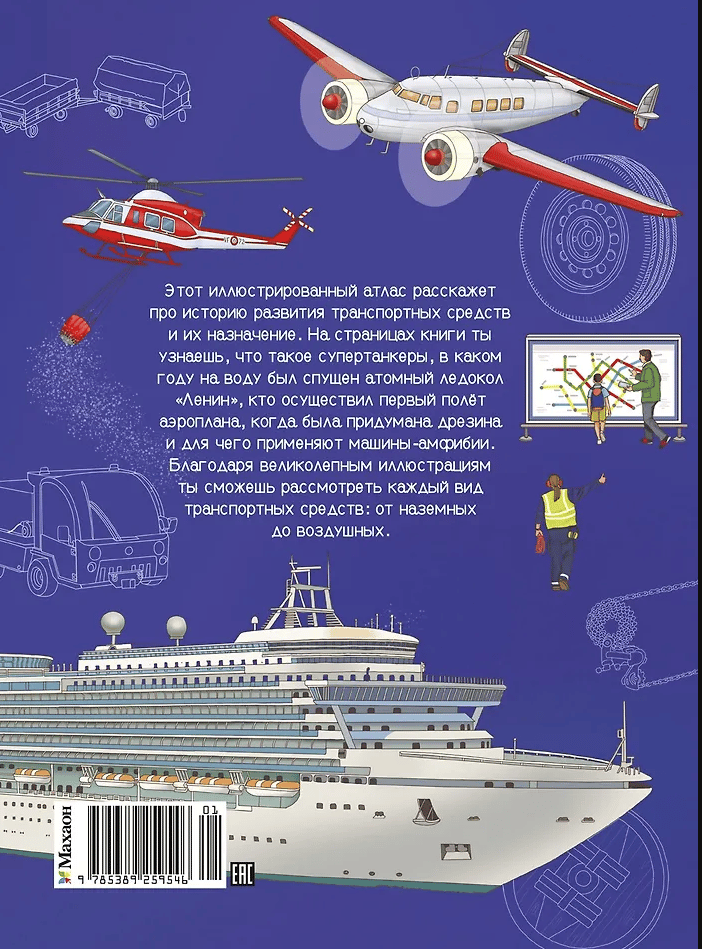 This illustrated atlas will tell the history of transport and its purpose. Within its pages, you'll learn about supertankers, the year the nuclear-powered icebreaker Lenin was launched, who made the first airplane flight, when the handcar was invented, and the uses of amphibious vehicles. Thanks to the stunning illustrations, you'll be able to explore every type of transport, from land to air.