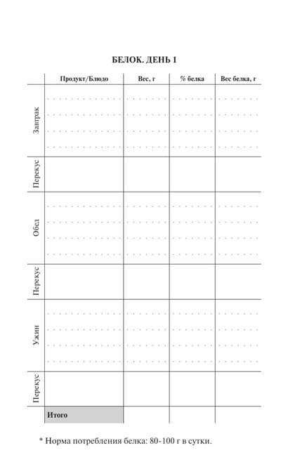 For 6 weeks, the tracker will help to put your diet in order and track the consumption of all important food components, as well as: