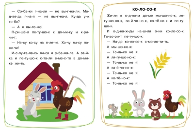 The easiest way to begin reading fiction is with nursery rhymes and short, popular fairy tales. Their content is familiar to the child, making the process of absorbing the text much easier. In this trainer, the texts are selected so that the child, starting at the simplest level, moves on to more complex ones, constantly refining their skills. The child, realizing they are succeeding, will work in an atmosphere of success and will develop a desire to read more and more.