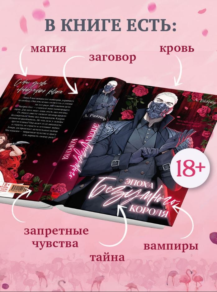 The novel "The Age of the Mad King" will delight fans of aesthetic reading with an atmospheric cover from Miorin (Elizaveta Izvekova), color illustrations of the most important scenes of the novel and illustrated endpapers and backpapers, exquisite page design. The book, which will become a treasure of your book collection, you want to admire, and it will be nice to present it as a gift.