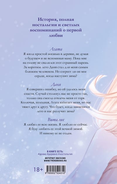 Agatha. I lived a simple life in the village, without thinking about the future or remembering my mother. Until this strange guy fell into my lap. In that short summer, Danya became the closest person to me. But will he warm my heart when winter comes?