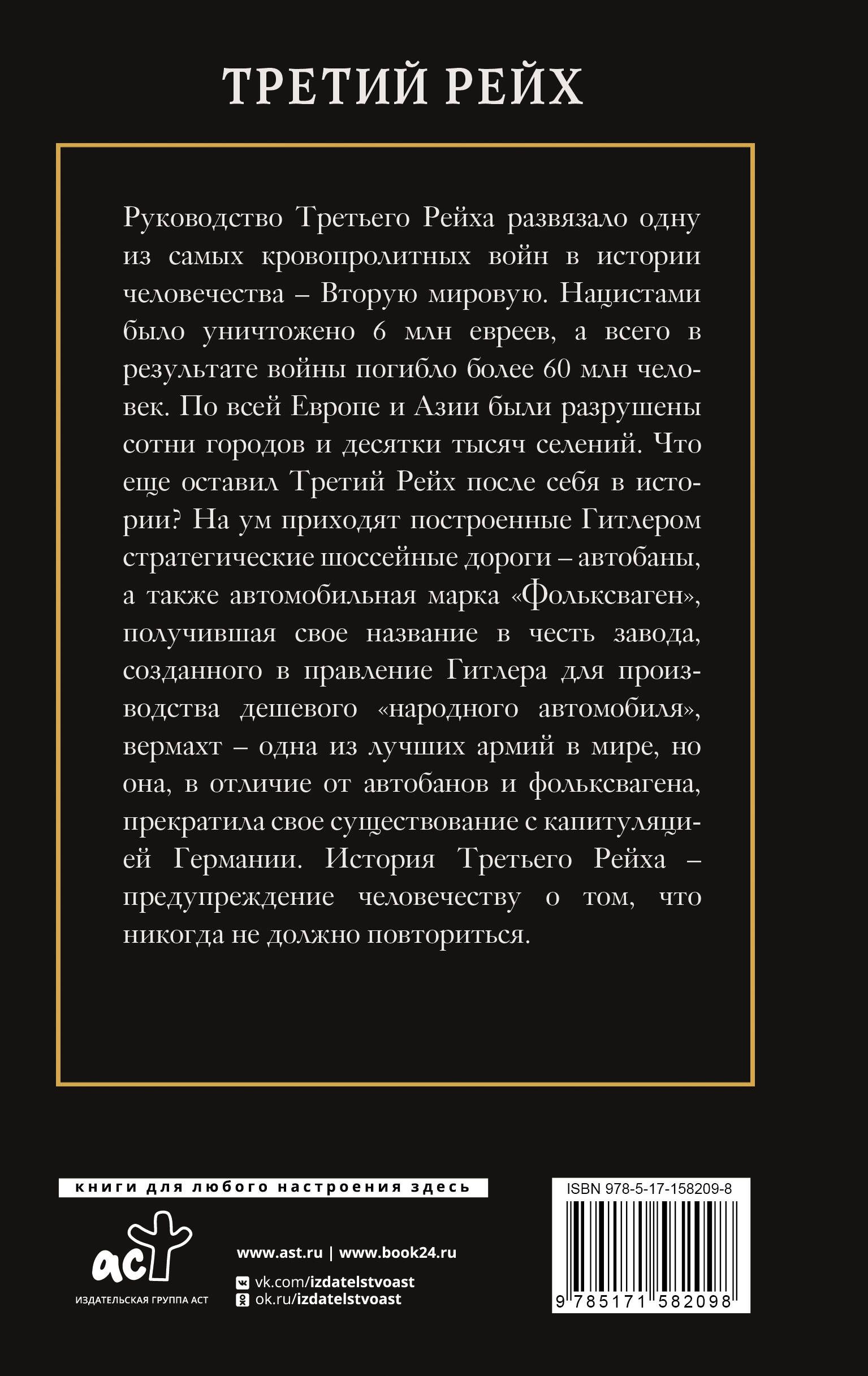 The leadership of the Third Reich unleashed one of the bloodiest wars in the history of mankind – World War II. The Nazis exterminated 6 million Jews, millions of civilians in Europe and tens of millions of soldiers died. In total, more than 60 million people died in the war worldwide. Hundreds of cities and tens of thousands of villages were destroyed throughout Europe and Asia. What else did the Third Reich leave behind in history? The strategic highways built by Hitler – the autobahns – come to mind, as well as the Volkswagen brand, which received its name in honor of the plant created during Hitler’s reign to produce a cheap “people’s car”. The Wehrmacht was one of the best armies in the world, but, unlike the autobahns and the “people’s car”, it ceased to exist with the capitulation of Germany. The history of the Third Reich is a warning to humanity that it should never happen again.