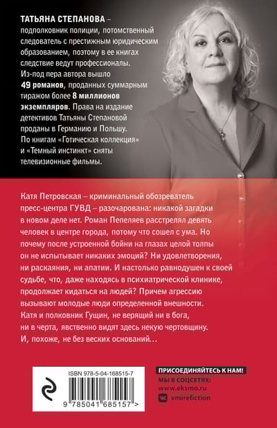 Katya Petrovskaya, a crime columnist for the GUVD press center, is disappointed: there is no mystery in the new case. Roman Pepelyaev shot nine people in the city center because he went crazy. But why, after the massacre in front of a whole crowd, he feels no emotion? No satisfaction, no remorse, no apathy. And so indifferent to his fate that, even being in a psychiatric clinic, continues to attack people? Moreover, aggression is caused by young people of a certain appearance. Katya and Colonel Gushchin, who believes in neither God nor devil, clearly see some devilishness here. And, it seems, not without good reason ...