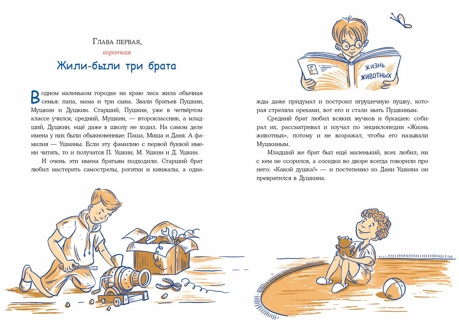 Pushkin, Mushkin, Dushkin (and actually Pasha, Misha and Danya) are ordinary children and live in an ordinary city family. But something extraordinary happens to them all the time. They make up their own games and find adventures, but they never know if the events are real or if all these miracles seem to them.