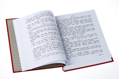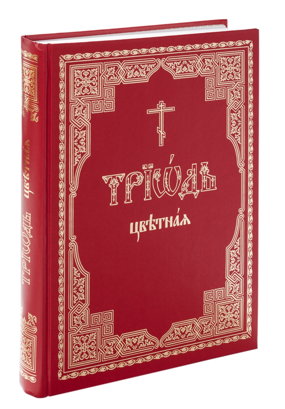 A traditional liturgical book. The colored Triodion contains the liturgical services for the movable days of the year, from the Sunday of Holy Pascha to the Sunday of All Saints. The book is in analogion format. It is digitally typeset in the Cyprian font and printed on high-quality offset paper in two colors.