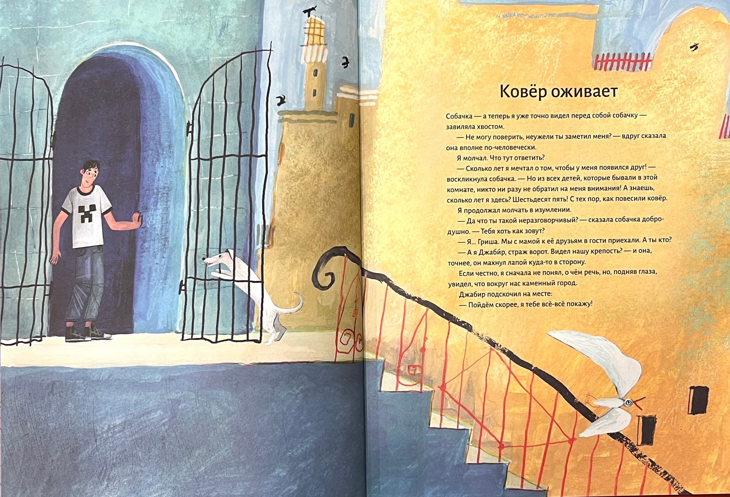 Like any modern child, Grisha had never thought about carpets.... until one day he found himself in the world of one. Together with his guide, a charming dog named Jabir, Grisha will embark on an incredible journey. He will have to get acquainted with the art invented thousands of years ago, learn what and how amazing carpets are woven from, see the oldest carpet and even unravel a vital cipher.