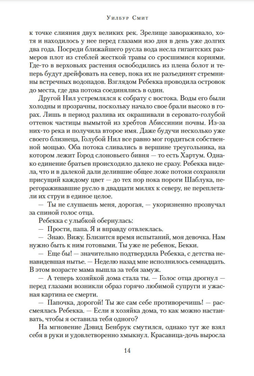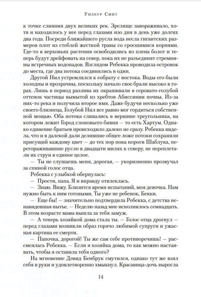 At the end of the nineteenth century, Sudan was in revolt against Anglo-Egyptian rule. Under the banners of the false prophet Mahdi, the warlike tribes of the desert gathered, and the threat came from them as fiercely as the heat from the sun. The Sudanese capital of Khartoum was under siege. Trapped along with hundreds of other Britons are General Charles Gordon, Captain Penrod Ballantyne, trader Ryder Courtney, British Consul David Benbrook and his daughters. Now they have a common fate and a common goal - because those who do not have time to leave Khartoum, a terrible death awaits... "Triumph of the Sun" Wilbur Smith - an epic, large-scale book in which history itself comes alive: the Eastern splendor and treachery, the noise and fury of the crowd, the sound of drums and the sounds of battle, heroism and betrayal, dark moments of despair and the sudden light of hope.