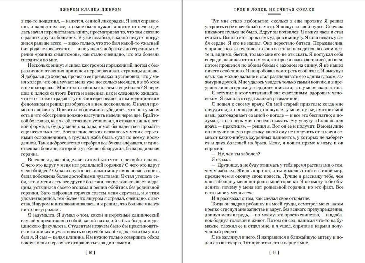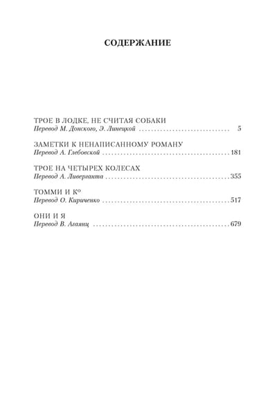 In the summer of 1888, the English writer Jerome K. Jerome, who had just got legally married, spent his honeymoon on the Thames. From the travel impressions and memories of this happy time was born the idea of one of the funniest books in world literature. The adventures of hapless, good-natured Englishmen traveling along the Thames, about which Jerome wrote in the novel "Three in a Boat, Not Counting the Dog" and its sequel "Three on Four Wheels" (as well as created between them a small masterpiece "Notes on an Unwritten Novel", which recognizes all the same unforgettable characters), have become well known even in the most remote corners of the planet. With unchanging love readers treat Jerome's works and in Russia, where his remarkable talent is appreciated almost higher than in the homeland of the writer. And thanks to the brilliant screen adaptation of the novel, realized in 1979, the main roles in which played by Andrei Mironov, Alexander Shirvindt and Mikhail Derzhavin, Jerome became even closer and clearer to us. This edition includes five novels by Jerome K. Jerome in the best translations ("Notes on an Unwritten Novel" is published in its entirety in a brilliant new translation by Alexandra Glebovskaya). These works are not only the perfect cure for boredom and bad moods, but also true classics for all times!