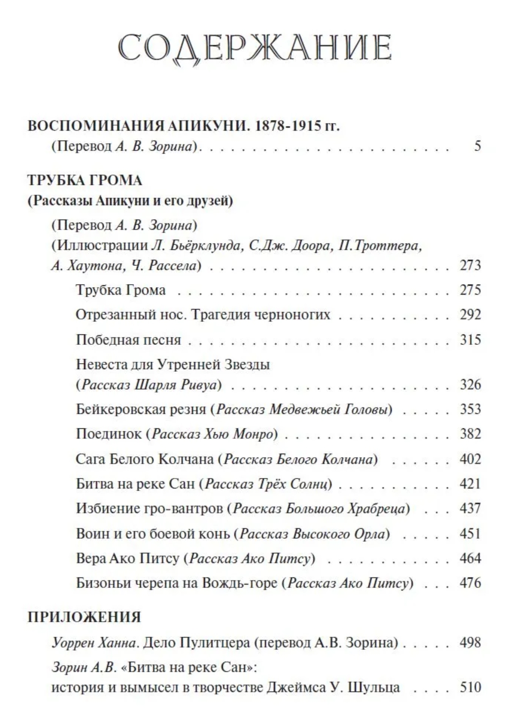 The next volume of Schultz's works includes the writer's recollections of his youth, published as separate essays in the Montana newspaper "Great Falls Tribune". They were published posthumously in a shortened and edited form in the collection "Blackfeet and Buffalo". Now the reader has the opportunity to get acquainted with the memoirs of Apikuni in their original authorial version, seeing the world of the Far West as it was remembered by a young fur trader in the last quarter of the 19th century. The collection of stories "Thunderpipe" combines stories recorded by the author from the words of his Indian and white friends, as well as vivid episodes that he himself witnessed.